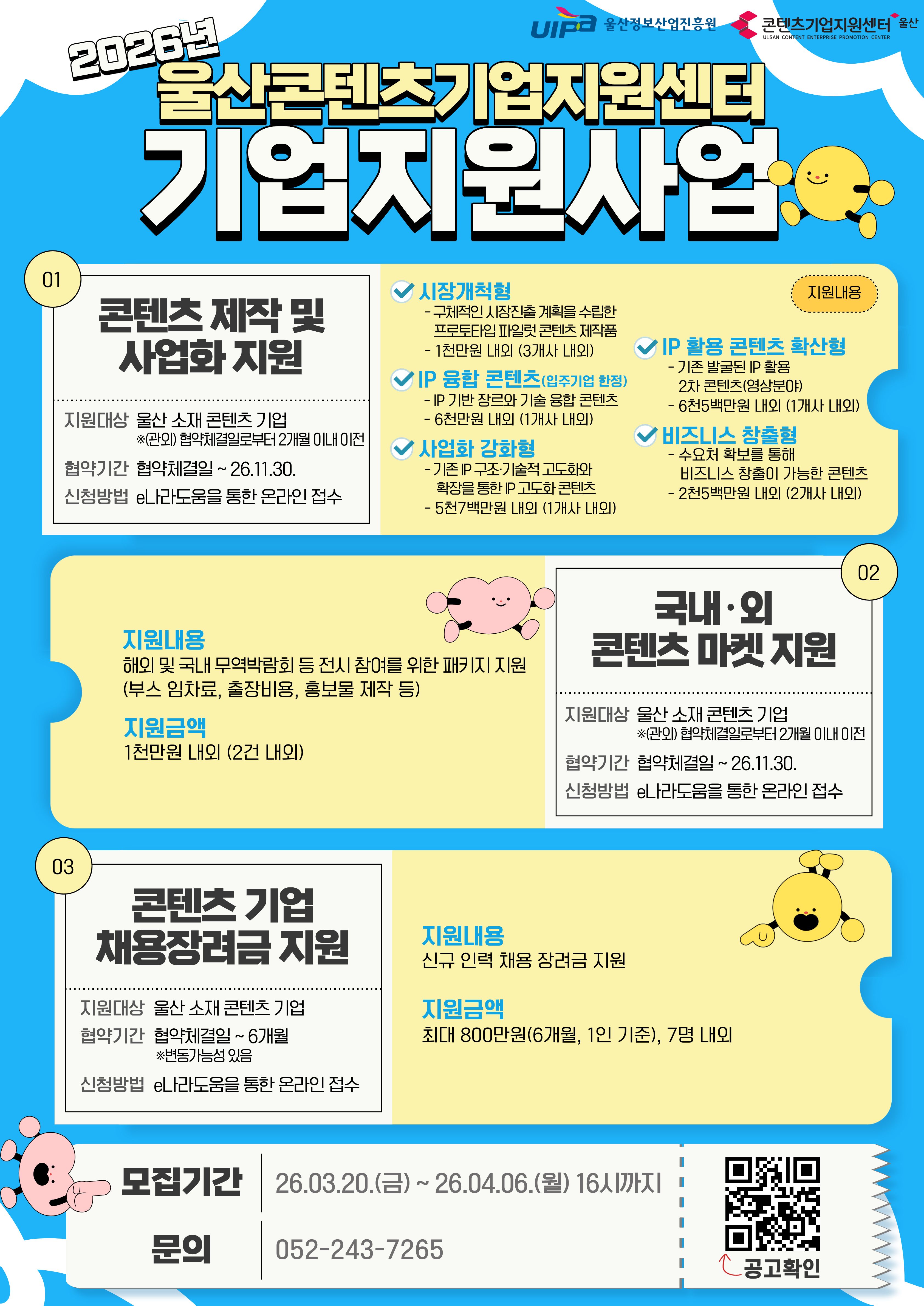 지원을 위해 다음과 같이 「2026년 울산콘텐츠기업지원센터 기업지원사업」을 공고하오니