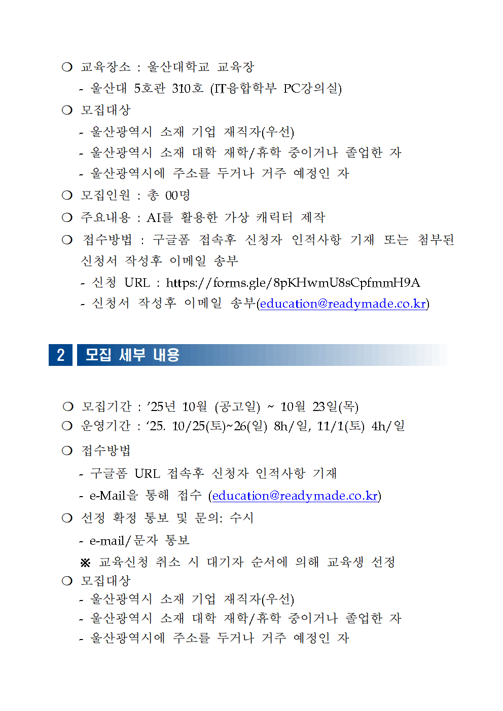 2025년 울산 콘텐츠 교육 프로그램 교육생 모집 [AI 기반 홍보영상 제작 과정(1차)]