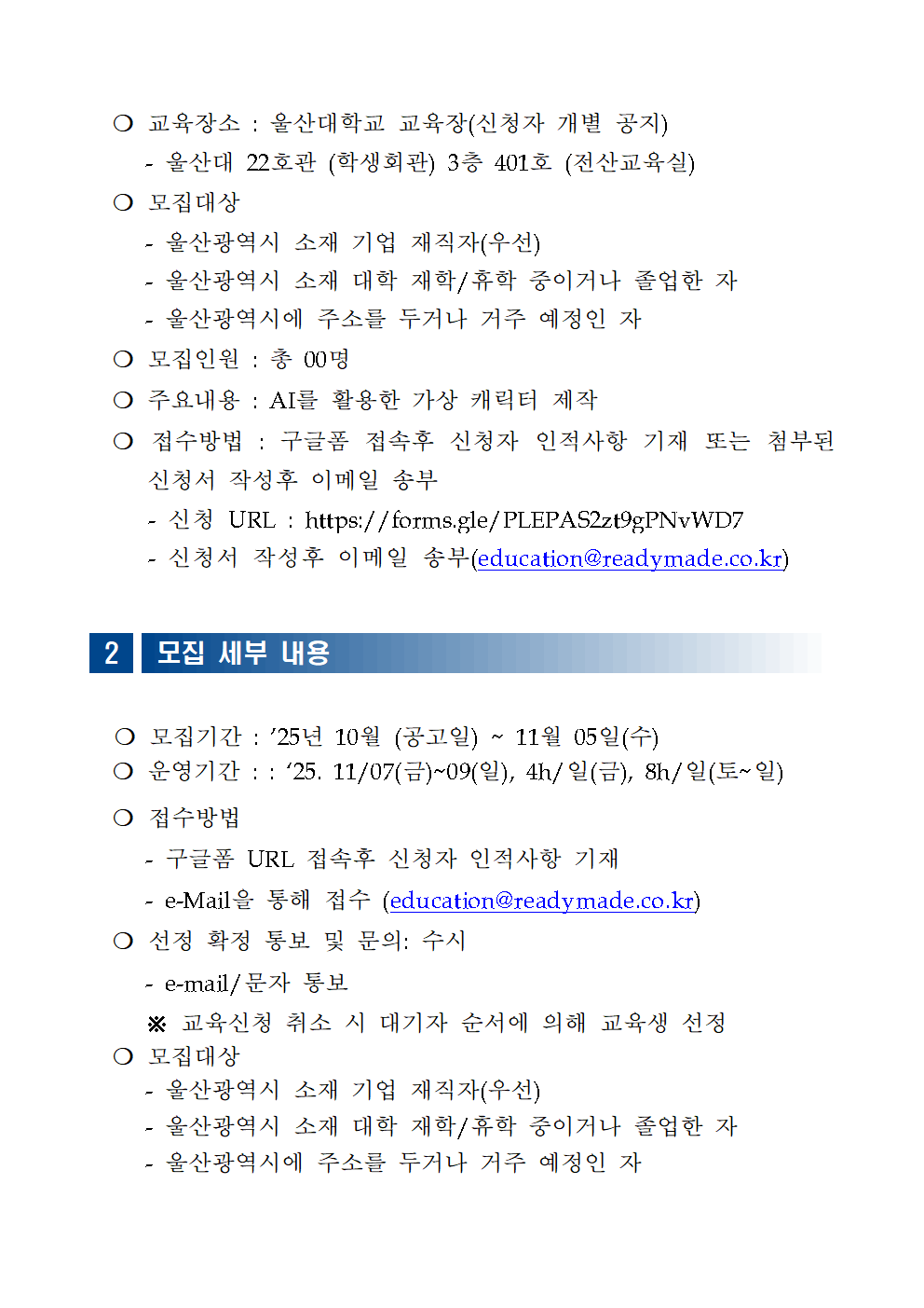 2025년 울산 콘텐츠 교육 프로그램 교육생 모집 [AI 기반 홍보영상 제작 과정(2차)]