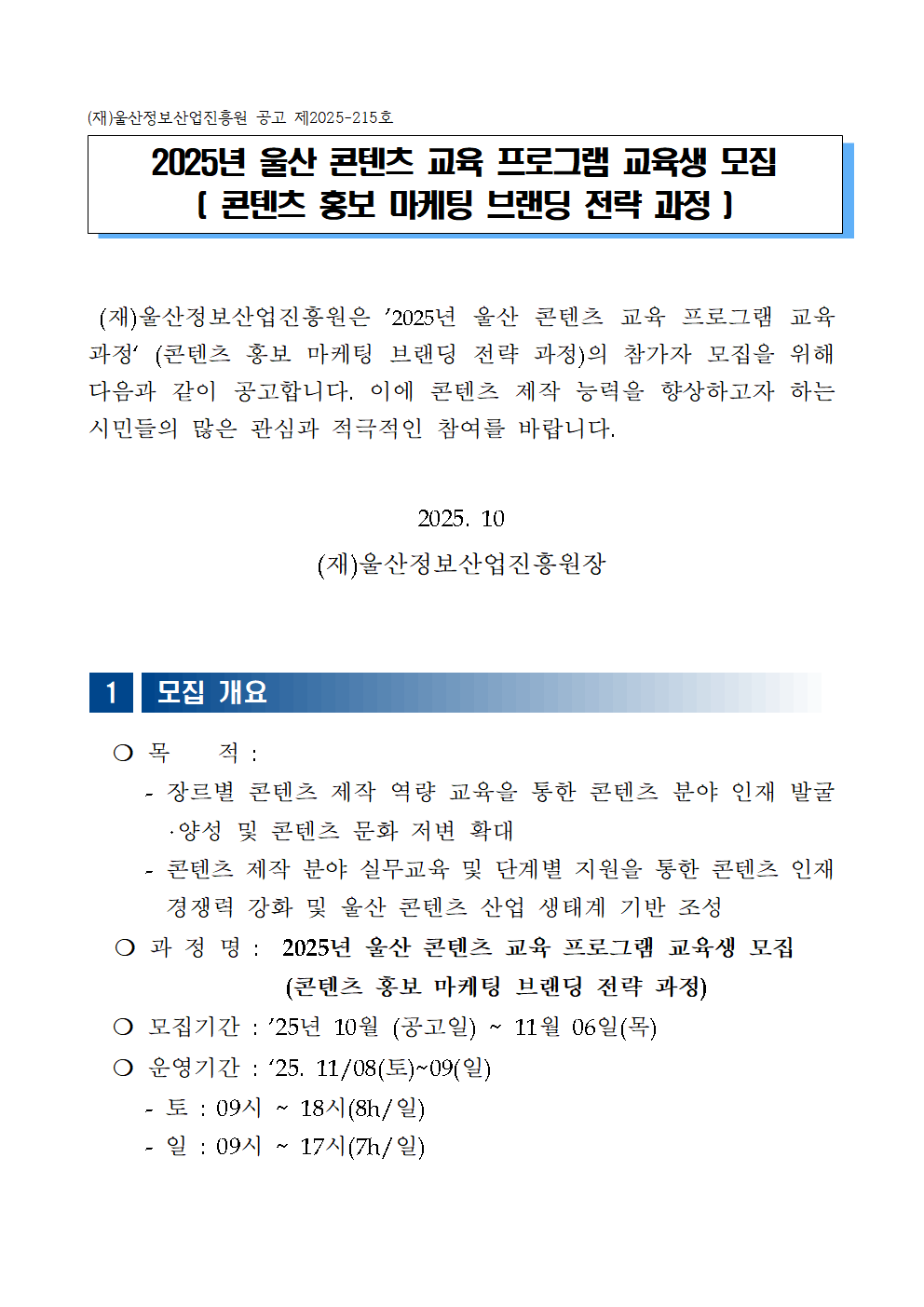 2025년 울산 콘텐츠 교육 프로그램 교육생 모집 [콘텐츠 홍보 마케팅 브랜딩 전략 과정]