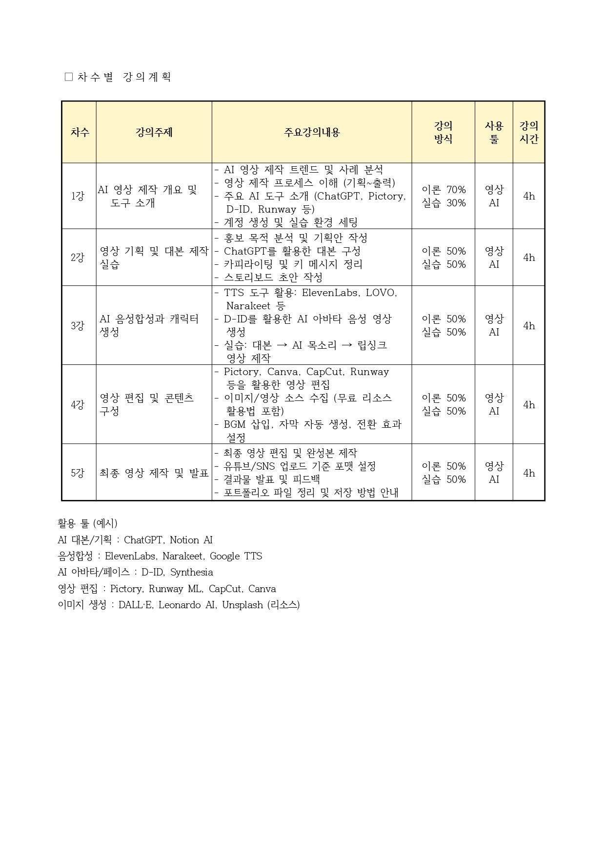 ❍ 과 정 명 : 2025년 울산 콘텐츠 교육 프로그램 교육생 모집 (AI 기반 홍보영상 제작 과정 3차(보강))