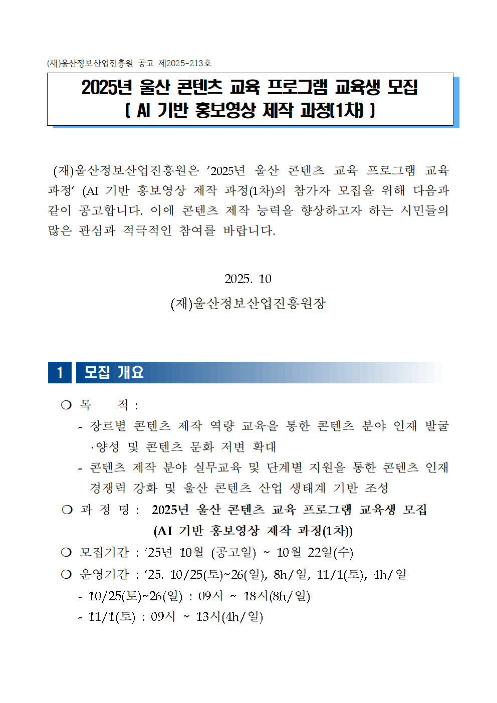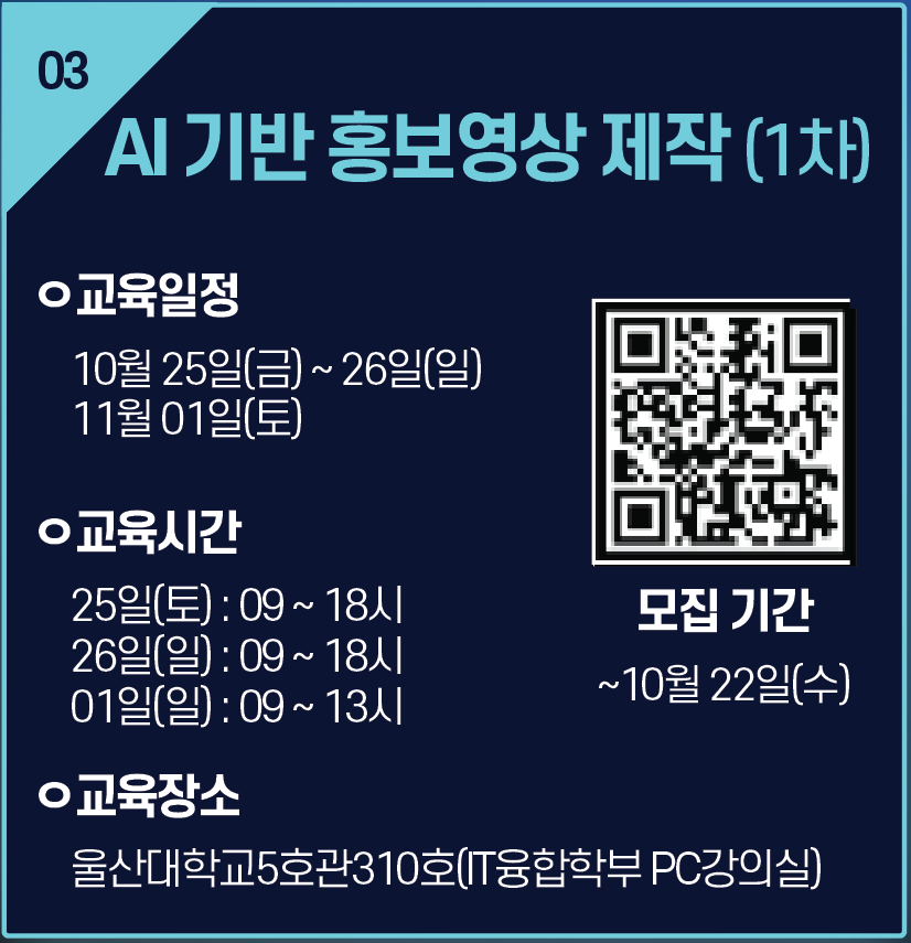 2025년 울산 콘텐츠 교육 프로그램 교육생 모집 [AI 기반 홍보영상 제작 과정(1차)]